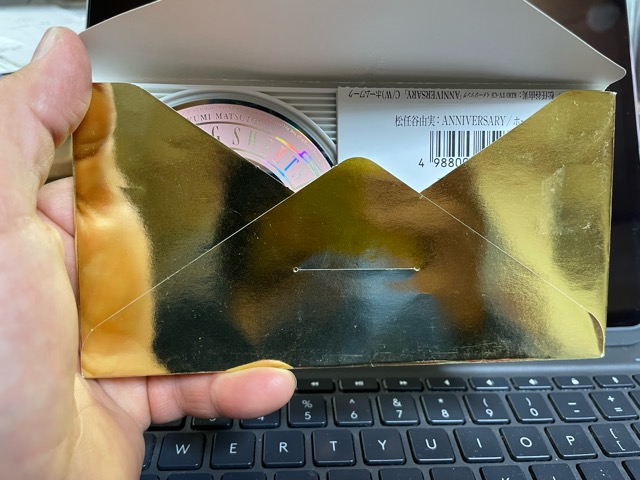 金の封筒に包まれたやさしい色合いのシングルCDです。8cmディスク!?でしょ飾っておくだけで中学生のあの頃にタイムリープできます。