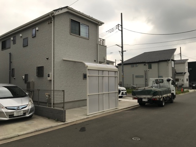 サイクルポートも建物と色味を合わせて白系で統一、自転車も3−4台停められるサイズなので使い勝手も良い物です。