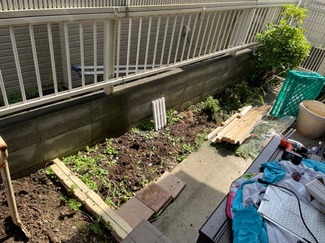 今回は府中市にお住まいのお客様よりお庭部分の土間コンクリート敷きのご注文です。畑として使っていた部分ですが日当たりが悪く良く育たない、室内で飼っている犬が土を掘り返して足が泥だらけになってしまうとのご相談でした。