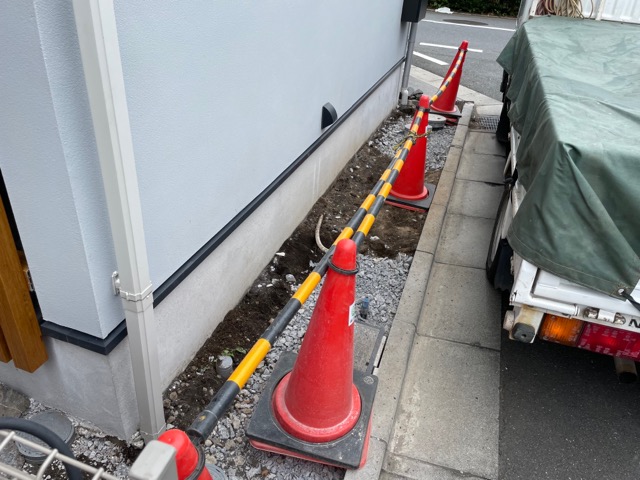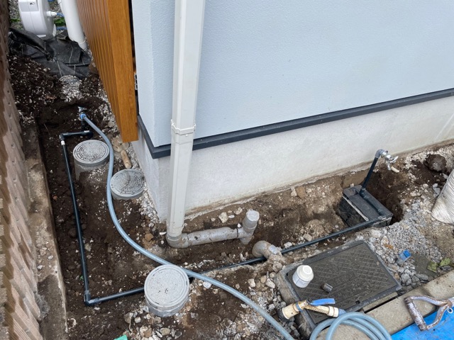 翌日は水道を移設し埋め戻しと下地作りです。確かにホースリースも置きづらいし前に出したほうがいいですね。