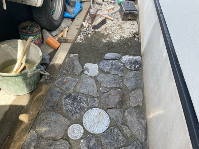 やっと並べ終わりました、石貼りの最後は達成感がありますね。いい仕上がりです。