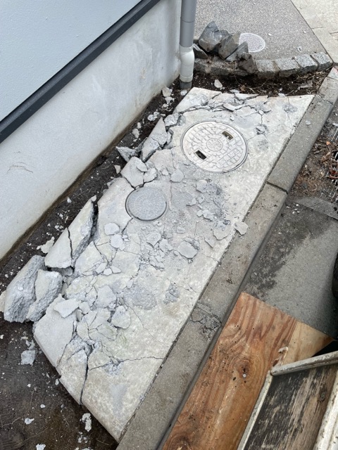 埋設管に気を遣いながら慎重に土間を壊します以外に壊すのもテクニックが必要です。壊したくない所に力がかからないように優しくやさしくいきます。